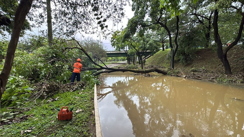 Durante o final de semana, uma força-tarefa foi mobilizada para normalizar os pontos afetados por alagamentos e quedas de árvores em diferentes regiões da cidade. Os trabalhos prosseguem pelos próximos dias e contam com o apoio de 33 caminhões (carroceria, basculante, compactador, munck e hidrojato), um triturador de galhos, cinco máquinas, entre pás carregadeiras e retroescavadeiras, além de aproximadamente 200 profissionais envolvidos diretamente nas ações.