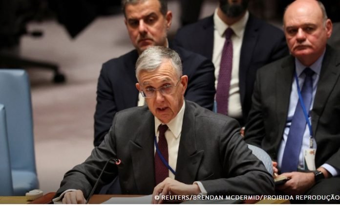 O representante brasileiro afirmou que o futuro da Venezuela deve ser decidido exclusivamente pelo seu povo, por meio do diálogo e sem interferência externa, dentro do marco do direito internacional.
