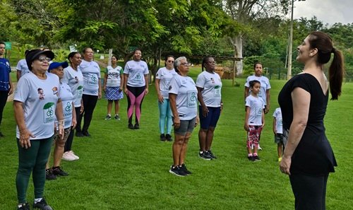 A ação “Corpo, Tempo e Coragem”, com a artista Bia Antunes, em Cachoeira Escura, integrando roda de conversa e apresentação artística em um espaço de escuta sensível;