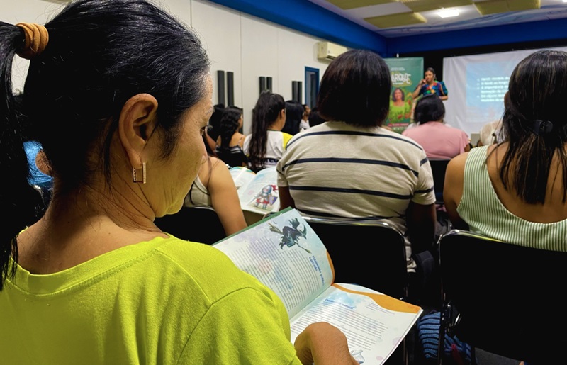 Parque de Histórias: Lendas e Encantos do Brasil foi ministrado por Flora Manga; curso integra as ações do projeto patrocinado pelo Grupo Emalto via Lei Federal de Incentivo à Cultura e reúne formação docente, espetáculos narrativos e distribuição de livros infantis.