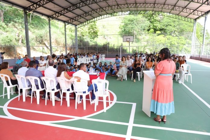 Com 660 m² de área construída, a quadra recebeu cobertura metálica, alambrado, escadas e rampas de acessibilidade, garantindo utilização segura em todas as épocas do ano e para todos os públicos. O investimento foi de R$ 665,5 mil, recursos que fortalecem o ambiente escolar e ampliam a oferta de atividades esportivas, culturais e comunitárias na rede municipal de Educação.
