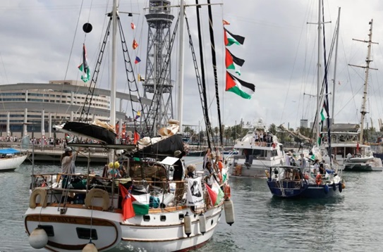 Mais de 40 embarcações desafiam o bloqueio ilegal imposto ao povo palestino em Gaza; leia relato de brasileiros que integram a missão humanitária