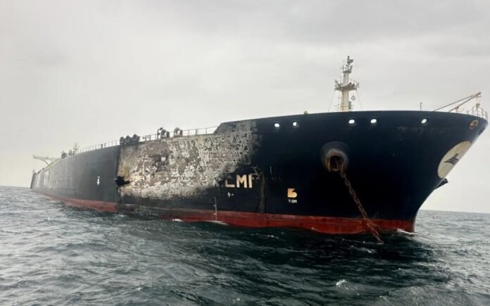 Autoridades de Dubai disseram que o incêndio no Al-Salmi, de bandeira do Kuwait, foi controlado após um ataque de drones, sem vazamento de óleo e sem ferimentos na tripulação. A Kuweit Petroleum Corp, proprietária do navio, afirmou que o casco da embarcação foi danificado.