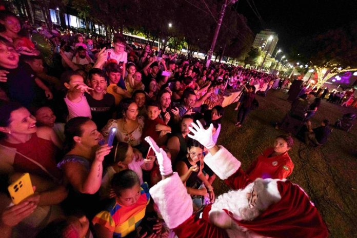 TIMÓTEO – A noite de domingo (30/11) foi marcada pela chegada do Natal dos Sonhos em Timóteo. Um desfile de Natal, com banda de músicos tocando ao vivo, personagens natalinos, circenses, bailarina, colaboradores voluntários da Aperam, participantes de projetos sociais realizados pela Fundação Aperam e o Coral Infantojuvenil Aperam percorreram o Centro da cidade, junto com a comunidade, até o casarão. As luzes foram acesas na chegada do cortejo, pelo Papai Noel, com a presença do público de quase 2 mil pessoas.