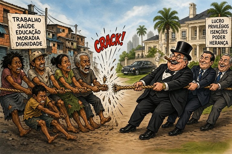 Os programas de governo da extrema direita brasileira se propõem a esmagar os pobres e, com eles, a classe média que, assim como muitos pobres, se acha rica. É deste lado, muitas vezes com o apoio dos próprios esmagados, que a extrema direita corta salários, empregos, aumenta a jornada de trabalho quase até a morte, o tempo de contribuição e a idade de aposentadoria, elimina políticas públicas de assistência social, de apoio às mulheres, negros e indígenas, nega a ciência, a eficácia da vacina, a ida à Lua e afirma que a Terra é plana.