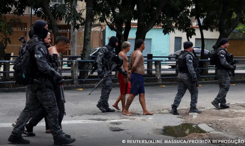 O número de presos já ultrapassa 100, muitos deles de uma facção criminosa do Pará, do norte do país, escondidos no Rio. Mais de 75 fuzis, além de pistolas e granadas foram apreendidos na ação até agora.