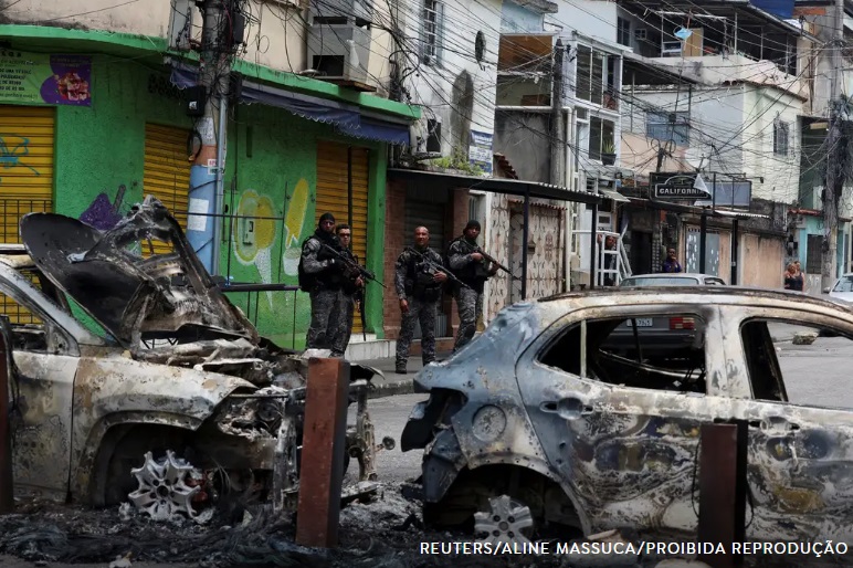O número de presos já ultrapassa 100, muitos deles de uma facção criminosa do Pará, do norte do país, escondidos no Rio. Mais de 75 fuzis, além de pistolas e granadas foram apreendidos na ação até agora.