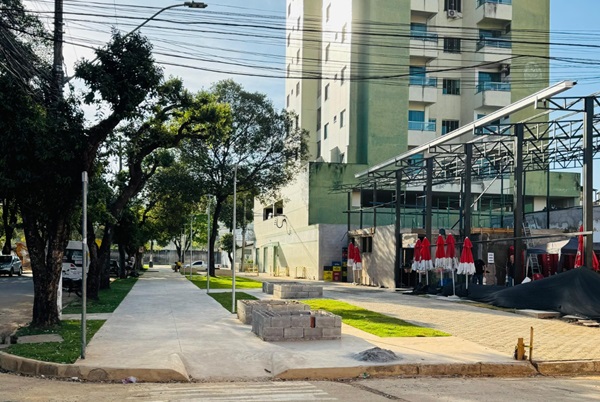 Quem passa pela Rua Tomé de Souza já percebe a diferença. Cerca de 90% do piso intertravado e de concreto foi concluído até setembro. As equipes seguem atuando na compactação do solo, finalização de pisos e também na construção de bancos e canteiros que vão trazer vida nova ao espaço.