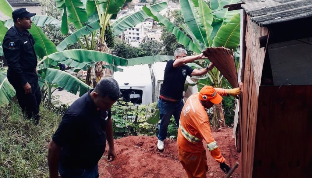 A primeira intervenção ocorreu na rua Vinólia, no bairro Esperança, onde foi demolida uma garagem construída em área pública e retomada a posse pelo município. Na mesma região, as equipes removeram um barracão em construção, também erguido em área pública e ainda desabitado.