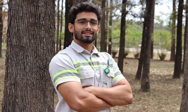 Foto: Pedro Arthur Oliveira, estagiário de Engenharia Florestal, destaca o ambiente diverso e inclusivo do Programa Profissional do Futuro da CENIBRA