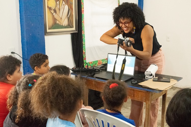 A oficina contou com o acompanhamento da equipe do projeto — Shirley Maclane (produção), Helena Nunes (monitoria) e Filipe Bicalho (assistência de produção) — que atuou ao lado de Tatiane durante toda a atividade, oferecendo suporte técnico e pedagógico às crianças.