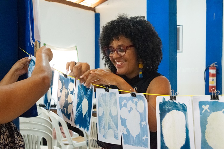 Oficina apresenta cianotipia – técnica artesanal de impressão fotográfica – para estudantes da Escola Professor Mário Casassanta no Ipaneminha