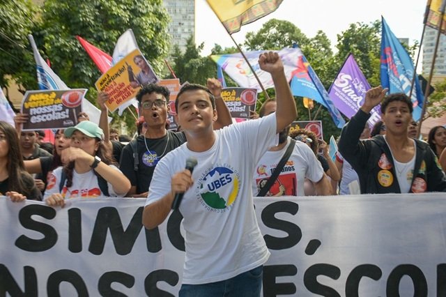 O Sindicato Único dos Trabalhadores em Educação de Minas Gerais (Sind-UTE/MG), a União Estadual de Estudantes, União Brasileira de Estudantes Secundaristas, organizações sindicais e movimentos sociais realizaram nesta quinta-feira (26/03) – último dia da greve por tempo determinado definida pela categoria – uma marcha saindo da Praça Raul Soares até a Assembleia Legislativa em BH, onde foi realizada a segunda votação do Projeto de Lei de revisão salarial de 5,4%. O índice, estabelecido pelo governo federal para reajuste do Piso Salarial Nacional, entretanto, não cobre a defasagem de 41,83% acumulada durante o governo Zema/Simões.